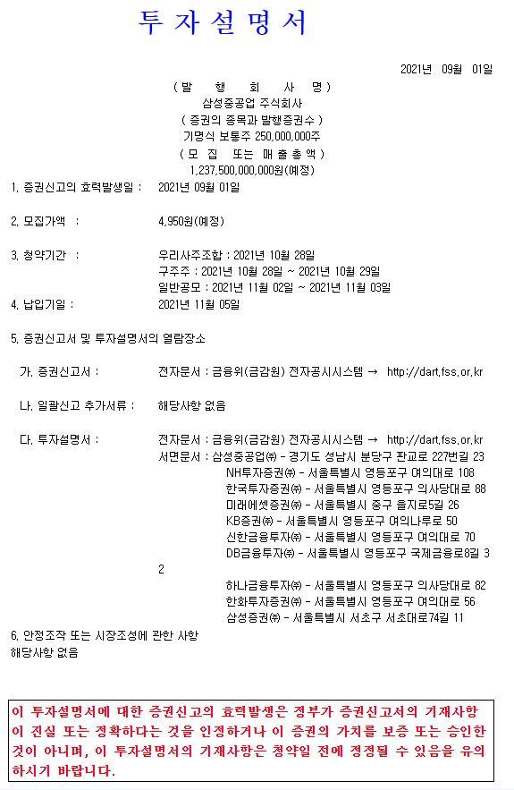 투자설명서에는 일반공모에 대해 다음과 같이 기술되어 있더군요.